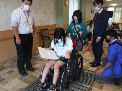 今、子どもたちはSHOHOタイムで福祉についての学習をしています。「ふくしってなぁに?」という問いかけに初めは答えられなかったけれど、みんなが幸せになるためにあるものなのだな、自分も何かできることがあったらしたいな、などという思いをもち始めています。そして、今日は西大路八条にある「そんぽの家」に行ってきました。校区ではあるけれど、実は初めて知ったという子がほとんどでした。実際に「そんぽの家」に行って、そこで働いている方の思いや施設にある工夫を見たり聞いたりし、また住んでいる方と関わることで、今まで全く知らなかった場所がより身近な場所になったのではないかと思います。ぜひおうちでもどんな話をしたのか、何を見つけてきたのかなど、話してみてください。