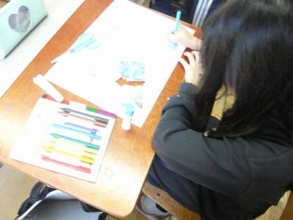 画用紙や色鉛筆を使って、いろいろなものを作っていました。