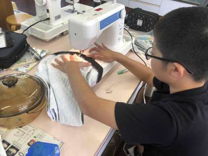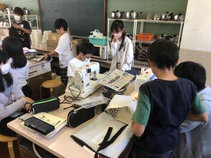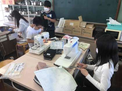 6年生が家庭科室でミシンを