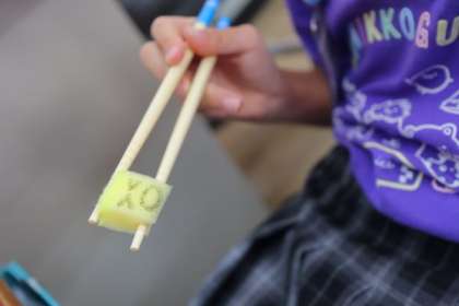 2組は木曜日に栄養教諭の先生にお箸の持ち方について教えていただきました。素敵なお箸名人セットをもらって、お箸の持ち方の練習をしました。もともと上手に使えている子もいましたが、さらに上達した様子で小豆をお箸で何度もつまむことができました。これから給食でもお家でもお箸の持ち方に気をつけて、食べてほしいと思います。