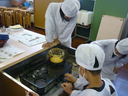 今日は、2組の調理実習でした。お米の様子をしっかりと観察し、形や大きさの変化に気付いていました。自分たちで炊いたご飯は格別だったみたいで、給食後でしたが、ぺろりとたいらげていました。「美味しかった!」と嬉しそうな子どもたちの姿が印象的でした。