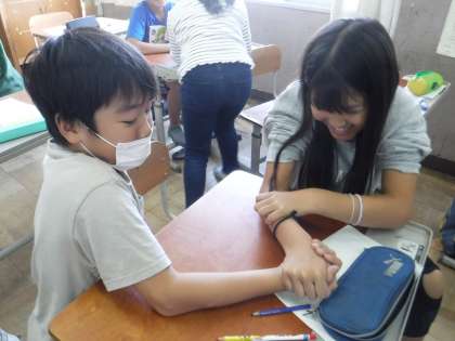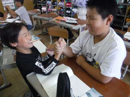 今日からは、新しい単元「わたしたちの体や運動」に入りました。友だちと机を持ち上げてみたり、腕相撲をしてみたりしながら、どうして腕が動くのかな?腕の中はどうなっているのだろう?と予想をしました。これから体の中にある骨や筋肉のつくりや仕組みについて学習していきます。