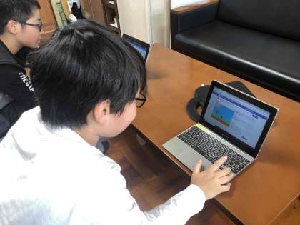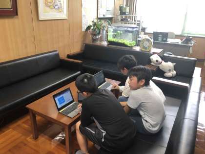 6年生が校長室に来て、自分たちのプログラミングした
