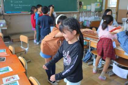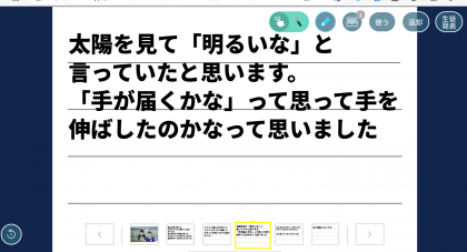 先週に引き続き、アートカードの学習をしました。今回はお気に入りのアートを体で表現しました。一人だとできないところは友達と協力してしました。写真を撮った後は、ロイロノートに「なぜそのアートを選んだのか」「アートを見て感じたこと」などを書きました。子どもたちは「もう少し顔の向きは…。」「手をこうしたほうがいいんじゃない?」と話しながら楽しんで学習をしている様子でした。