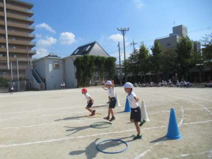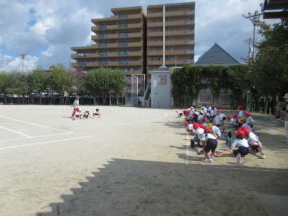 体育の終わりの時間に「先生、くじらぐもだ!」と空を指さしていました。