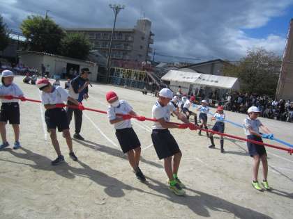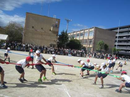 ドキドキするなか、始まった四方向綱引き。4回戦までは、それぞれのチームが1勝ずつする波乱の展開になりました。どのチームも本当によく頑張っていました。仲間の健闘を称える姿も素敵でした。