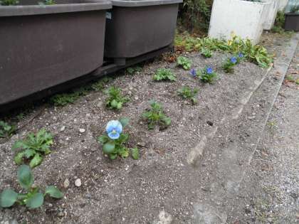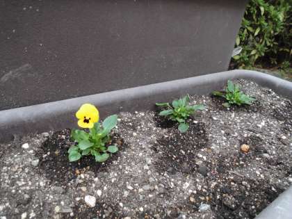 植えてすぐの時ははまだ葉っぱだけだったパンジー・ビオラですが、少しづつお花が咲きはじめました。