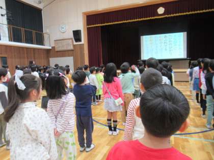 校長先生のお話を聞いて、1年生も大事なことを考えていました。