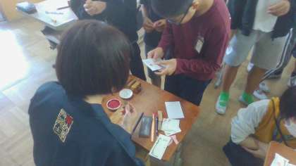 本日は篆刻のマイスター6名にお越しいただき、はんこを作りました。体験中はそれぞれのこだわりや思いを表現しようと集中していました。