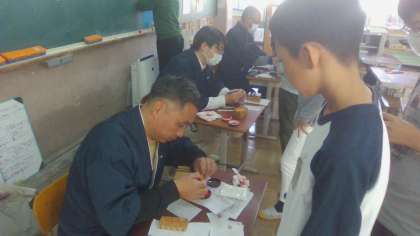 マイスターに見てもらってアドバイスを受けるという貴重な体験もできました。はじめと比べて堂々とした文字になっていく様子が面白かったです。繰り返しアドバイスを受け、最後まで粘り強く取り組むことが出来ました。