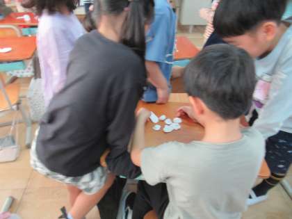 紙ねんどを使って、壁や物などの形を写し取って楽しみました。
