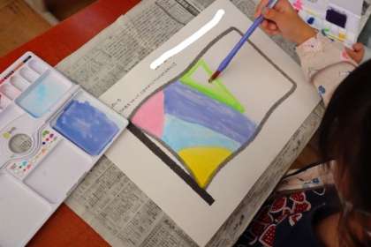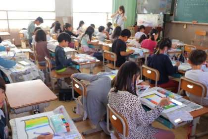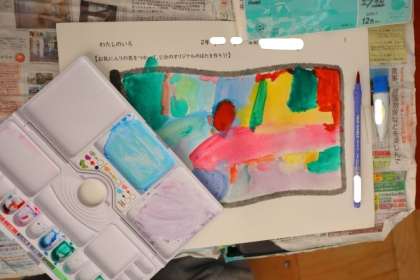 自分の好きな色を使って「わたしだけの旗」を描きました。そして「自分らしさ」を表しました。明日の人権参観では、一人一人が旗に込められた自分の思いを友達に伝えます。後日、2組も「わたしだけの旗」を描きます。楽しみにしておいてくださいね。