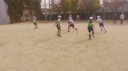 試合の中では、お互いに声を掛け合う様子が見られチームワークを感じました。また、運動が苦手だという児童もトライを決める姿も見られました。