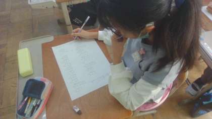 二学期の半ばから教科係というものを立ち上げました。中学校に向けての予行演習のつもりでしたが、子どもたちも前向きに取り組んでいます。「事務作業ではなく学習を楽しくするための活動を」ということで、国語係さんは漢字テストを実施してくれました。習った漢字ではあるけれど書けない、意味が分からない、熟語がたくさんあることに子どもたちは驚いたり笑ったりしていました。子ども同士で作ったテストなので気が楽なのでしょうか。漢字の学習のネタができたと喜んでいる子もいました。この調子で学びがつながっていくように声掛けをしていきます。