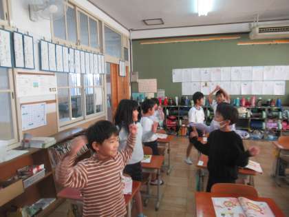 目覚まし時計の針やベルになりきって、曲に合わせて体を動かしました。
