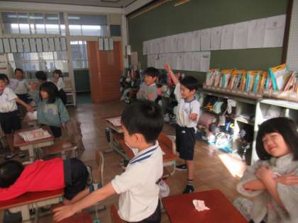 曲の最後を子どもたちは「壊れてしまったんだと思う!」と言って、バタン!と倒れて、曲を終えていました。