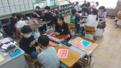 外国語では、行きたい国で行ける場所や買えるものなどを、ロイロノートを使って、発表しました。発表者に対して、英語でレスポンスを返す姿が素敵でした。ローマ字を使ったトランプゲームも実施しました。英語でやり取りする楽しさを実感していたように思います。