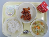 今日の献立は、麦ごはん、牛乳、がんもどきのあんかけ、豚汁です。
