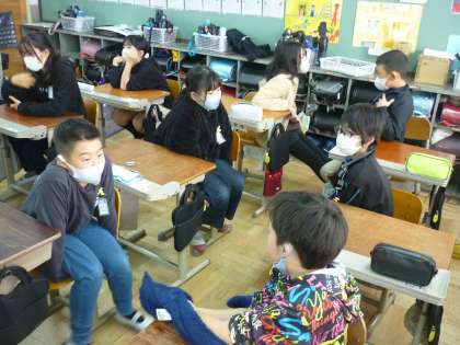 それぞれのクラスの人権目標から、特に心に残ったことを近くの友達と話し合いました。活発に意見交換する姿が、素敵でした。今回のことをきっかけに、友達とよりよい関係を築けるようになってほしいと思います。