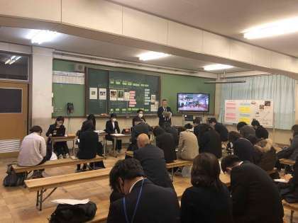 写真は祥栄小学校で公開された音楽の授業について話し合っている