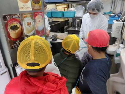 町たんけんの学習で地域にあるお店にインタビューをしに行きました。子どもたちは朝から緊張していた様子でしたが、普段聞くことができないことをお店の方から聞くことができてとてもうれしそうな様子でした。「また家の人と買いに来てみよう〜!」「おいしそう!」とインタビューした子たちは大盛り上がりでした。