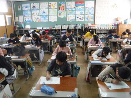 今日は祥豊計算テストがありました。4年生の子どもたちにとって、今回の計算テストは苦手な子が多く、「できるかなぁ?」「難しいなぁ。」といった声がたくさん聞こえてきました。でも、少しではありますが、今日までテストと同じ内容の計算を練習してきました。テスト中の子どもたちは真剣な表情をしています。冬休みまで全員合格100点目指して頑張りましょう!!