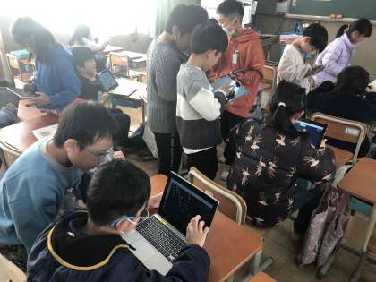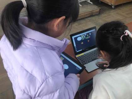 タブレットを使って、ほしい野菜を伝え、その数を聞いたり言ったりしています♪