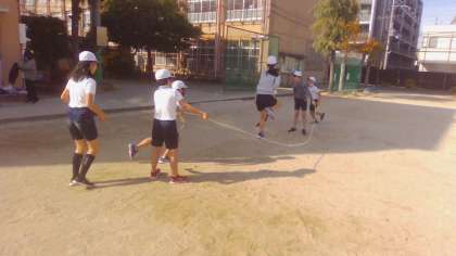 ジョギング・なわとびも今日で最後でした。はじめのころと違って、自分の目標とする運動強度を意識して走ることができていました。走っていないグループはみんなで大縄跳びをして楽しく運動できました。