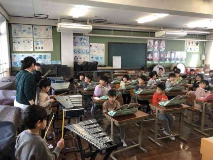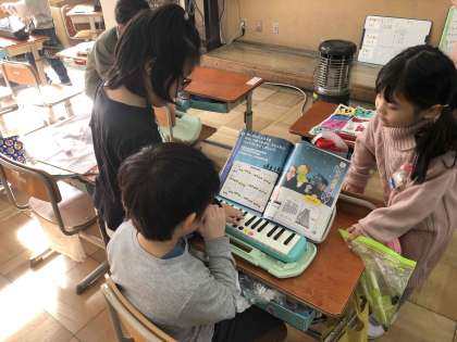 1年生が教室で鍵盤ハーモニカを