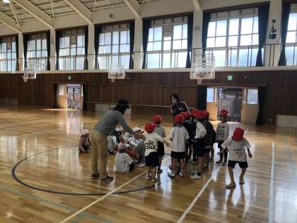 1年生は体育館で、6年生は運動場で