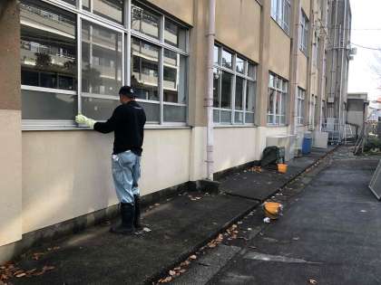 今回は1年生の廊下窓を綺麗にして