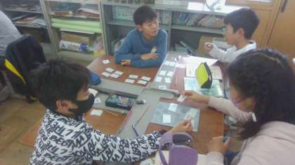 これまでに学んだ表現を使ってカードマッチングをしました。行事を言うことは簡単ですが、どんなことをしたのかはまだ言いなれない様子。次の時間の課題が見つかりました。