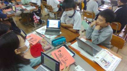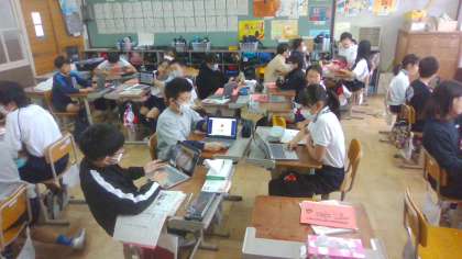 外国語「What would you like?」の学習では、値段の言い方や尋ね方を学習し、実践しました。お菓子や飲み物などの値段をグループで当てるクイズをしました。とても楽しそうな様子でした。