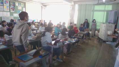 国語係さん中心に、俳句や短歌の交流をしました。誰の作品かわかったときの驚きの声が心地よく響いていました。ふりかえりでは「文字だけでも場面がすぐに浮かんですごい」「中の言葉が字余りだけれど心地よい」「友達の冬のイメージが知れて楽しかった」などの意見があり、良い交流になったと感じました。