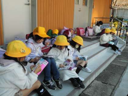 12月半ばとは思えない温かい日差しの中、子どもたちは読書を楽しんでいました。