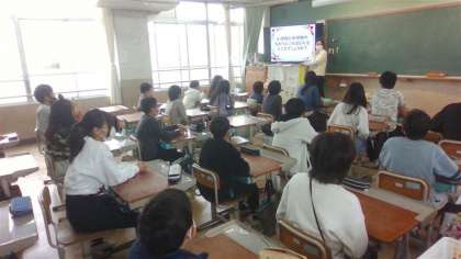 中学校給食の試食会と合わせて食教育を行いました。中学校でも食を大切にする心を持ち続けてほしいと思います。