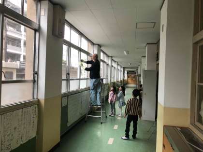 前回、1年生の廊下側の窓を拭いてもらっている場面を紹介いたしました。