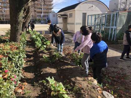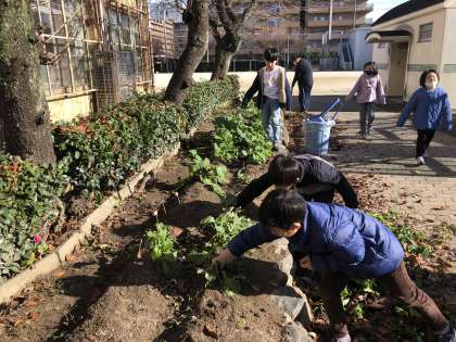 さっそく美しくなった学校園に2年生児童が