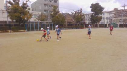 回数を重ねて少しずつサッカーらしくなってきました。広がってパスをもらいやすくしたり、守りにいったりと工夫が見られます。何より、「今はまだ勝てていないけど、このチームで勝ちたいし、みんな頑張っているから、今日はもっと動こうと思います」と、ある児童が言っていたのがとてもうれしかったです。残りのサッカーもとても楽しみです。