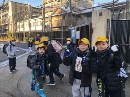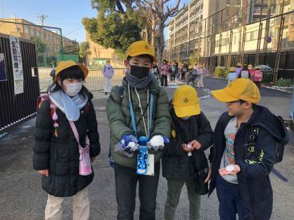 登校中に雪を集め、雪玉を披露してくれます。