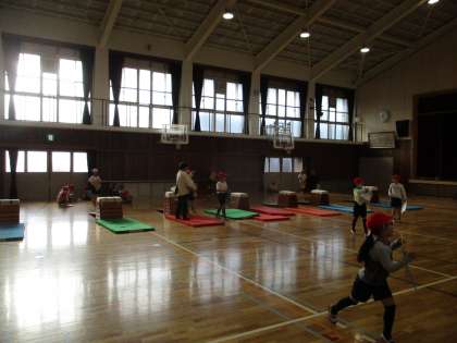 2年生が体育で跳び箱をしています。