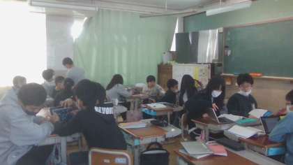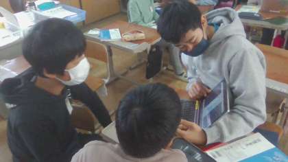 教科書から抜き出した人を引き付ける表現を分析し、なぜ引き付けられるのかを図や文章に表しました。交流に向けて、どうすれば相手に伝わりやすくなるのかを考えて練習することができ、内容の濃い交流になりました。