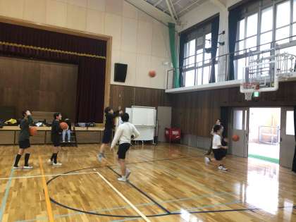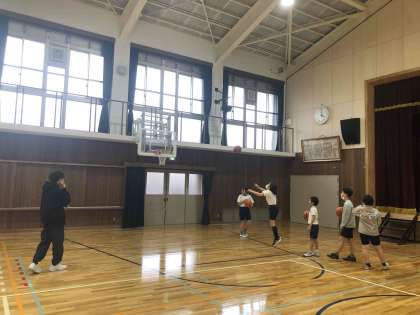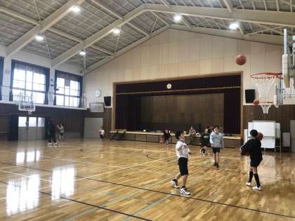 体育館ではバスケットが行われています。