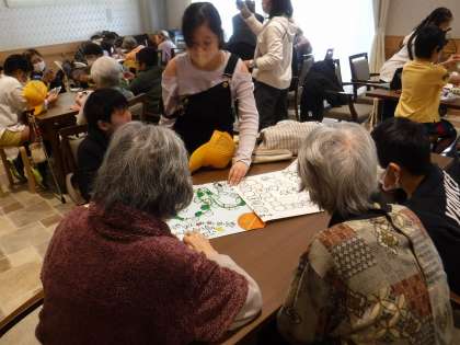 3回目の「そんぽの家」訪問に行ってきました。司会進行は全て子どもたちが行い、住んでいる方に喜んでもらおうと各グループでトランプやすごろくゲームなどを準備しました。