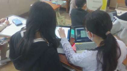 「伝えたいことを明確に」というつけたい力に向かって活動をしています。交流の中で「一番伝えたいところはどこ?」「鹿のどの部分を伝えたい?」など核心に迫る問いが生まれています。清書の形式は自由で、明確にした伝えたいことを思い思いに表現しています。