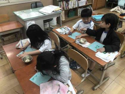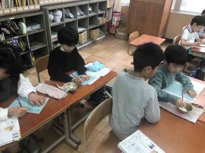 1年生が教科交換授業をしています。