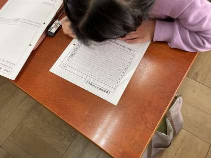3学期もあとわずか。3学期の学びを振り返ったあと、今年度の振り返りもしました。「漢字を頑張った!」「九九を頑張った!」とそれぞれ頑張ったことを書きました。今年1年間で成長したことをそれぞれが実感しているようでした。