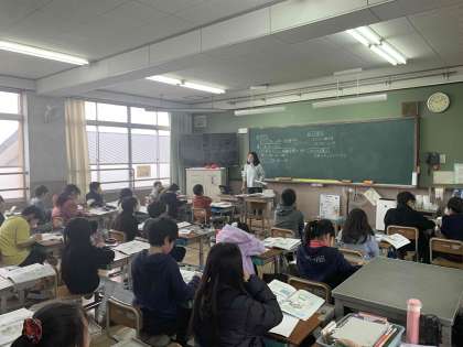 4年生は交換授業で社会の授業をしています。