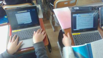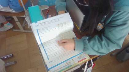 教科書の手引きも参考にしながら丁寧に根拠を探り、自分の考えをまとめています。煮詰まったら友だちや先生に相談しつつ、一歩ずつ前に進んでいます。