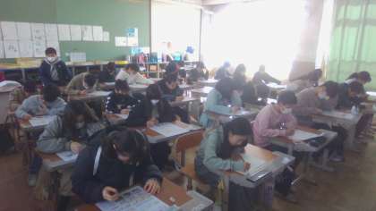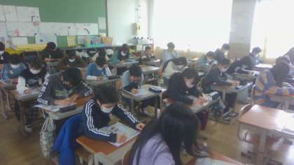 6年生のまとめテストを実施しました。これまでに培った、知識や資料の読取り能力を生かして全力で取り組みました。